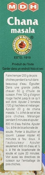 MDH Chana Masala is a renowned, time-tested blend of numerous ground and dried spices specifically curated to give your chickpea curry a rich texture, appetising aroma, and a perfectly balanced, tangy-spicy flavor.